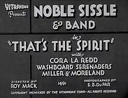 That's the Spirit is an American short musical film released in 1933.[1] It features an African American cast starring Noble Sissle and was directed by Roy Mack. The Vitaphone film was distributed by Warner Brothers. The film survives.