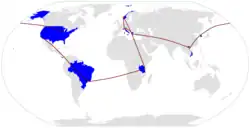 1. ^ The first Copa Airlines flight carried five teams and was scheduled to arrive 90 minutes before the second flight, which carried the remaining six teams.