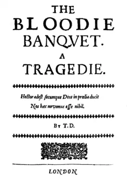 The Bloody Banquet[1] is an early 17th-century play, a revenge tragedy of uncertain date and authorship, attributed on its title page only to "T.D." It has attracted a substantial body of critical and scholarly commentary, chiefly for the challenging authorship problem it presents. It has been attributed to a collaboration between Thomas Dekker and Thomas Middleton.