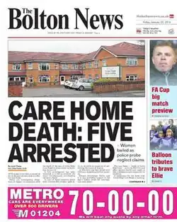 The Bolton News – formerly the Bolton Evening News – is a daily newspaper and news website covering the towns of Bolton and Bury in north-western England. Published each morning from Monday to Saturday and online every day, it is part of the Newsquest media group, a subsidiary of the U.S media giant Gannett Inc. The current editor is Richard Duggan, who also oversees other titles in the North West of England.