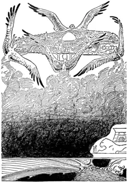 Meanwhile, Balkis has a talk with the butterfly's wife, who says she is only pretending to agree with him, because "you know how men are." Balkis tells her she should dare her husband to stamp his foot, as he must be lying, and then she can argue with him again. Really, she is hoping the disappearance of the palace will shock the other wives into obedience.
