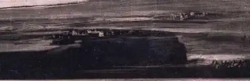 A series of parallel themes also exist in Disasters of War and the eponymous unnumbered print The Giant or Colossus, dating from between 1814 and 1818,[4] which shows a giant seated in a dark and desolate landscape with a crescent moon in the top corner. However, the giant's posture and the darkness of the night express a solitude that is different from the aggression shown in the painting and the print is not obviously related to war. It is not possible to ascertain if the giant's eyes are shut in the print, but it appears to be listening out for something. That is, the giant is doing something that perhaps Goya, who had been deaf since 1793, longed to be able to do. Or perhaps the giant's posture reflects the alert attentiveness of someone who is deaf or blind or both.