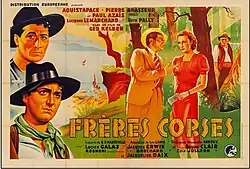 The Corsican Brothers (French: Frères corses) is a 1939 French drama film directed by Géo Kelber and Robert Siodmak and starring Jean Aquistapace, Pierre Brasseur and Lucienne Le Marchand.[1] [2] It is loosely inspired by the novella of the same title by Alexandre Dumas. Siodmak supervised the production and shot much of the location work in Corsica.