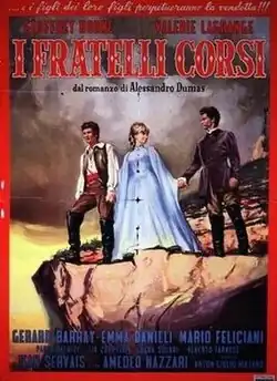 The Corsican Brothers (Italian: I fratelli Corsi) is a 1961 French-Italian historical action film directed by Anton Giulio Majano and starring Geoffrey Horne, Valérie Lagrange and Gérard Barray. It is also known as Lions of Corsica. The film is an adaptation of the 1844 story The Corsican Brothers by Alexandre Dumas.[2] The film was shot in Eastmancolor.