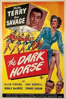 The Dark Horse is a 1946 American drama film directed by Will Jason and written by Charles R. Marion and Leo Solomon. The film stars Phillip Terry, Ann Savage, Allen Jenkins, Jane Darwell, Donald MacBride and Edward Gargan. The film was released on July 19, 1946, by Universal Pictures.[1][2][3]