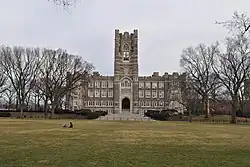 Principal photography began August 14, 1972.[54] Although the film is set in Washington, D.C., many interior scenes were shot in New York City. The MacNeil residence interiors were filmed at CECO Studios in Manhattan,[55] with Karras's confrontation with his uncle, shot at Goldwater Memorial Hospital, now the site of Cornell Tech, on Roosevelt Island in the East River between Manhattan and Queens; the scenes with Karras's mother in the hospital were filmed at Bellevue.[56] The scene where Father Karras listens to the tapes of Regan was filmed in the basement of Fordham University's Keating Hall,[57] where O'Malley was an assistant professor of theology.[58]