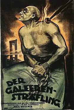 The Galley Slave (German: Der Galeerensträfling) is a 1919 German silent historical adventure film directed by Rochus Gliese and Paul Wegener and starring Wegener, Lyda Salmonova, and Paul Hartmann.[1] Inspired by several of the novels of Honoré de Balzac including Lost Illusions, it was released in two parts on separate dates during October 1919. Although Gliese was the principal credited director, the film's star Wegener also worked on its production.