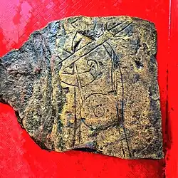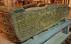 Side of the Viking-Age Govan Sarcophagus, thought to depict a royal saint killed by Vikings in the 870s