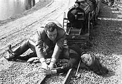 Steed unties Mrs Peel from track
