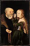 The Ill-Matched Couple is a 1532 oil painting by the German Renaissance painter Lucas Cranach the Elder. It was owned by Maximilian I of Bavaria until 1632, when Swedish troops captured it in a raid on Munich and thus is now in the Nationalmuseum, Stockholm.[1]