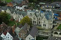 In the mid-19th century, following a serious fire, the school moved into a new purpose-built Victorian schoolroom, where it flourished under headmaster Hugh Fowler.[12] Towards the end of the century, a period of decline set in, mainly due to financial challenges, the rise of other public schools and the unwillingness of the Dean and Chapter to maintain more than a 'music school'. At the time of the First World War the school was a very small one with just 30 or so pupils, the majority of them choristers.[13] A modest recovery occurred in the 1920s, but the striking revival of the school's fortunes came in the 1950s and 1960s inspired by the reforms of headmaster Tom Brown.[14] The school expanded rapidly, gaining a new base in the Old Bishop's Palace from 1955 and moving toward co-education from 1969.