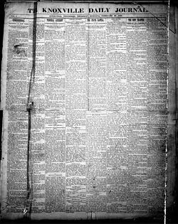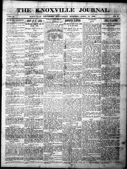 ![]() The Knoxville Journal for Wednesday, April 14, 1886, the first issue bearing this title | |