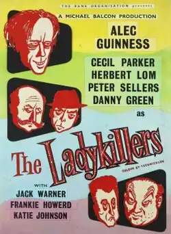 The Ladykillers is a 1955 British black comedy crime film directed by Alexander Mackendrick for Ealing Studios. It stars Alec Guinness, Cecil Parker, Herbert Lom, Peter Sellers, Danny Green, Jack Warner, and Katie Johnson as the old lady, Mrs. Wilberforce.[2]