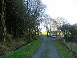 The lodge house, Pitcon Cottage, is marked on mid 18th century OS maps but no longer exists. A network of estate roads existed with a ford crossing the River Garnnock before the mineral railway was built.[8]