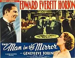The Man in the Mirror is a 1936 British comedy film directed by Maurice Elvey and starring Edward Everett Horton, Genevieve Tobin and Ursula Jeans.[1] It was adapted by F. McGrew Willis from the 1931 novel by William Garrett.