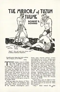 "The Mirrors of Tuzun Thune" is a fantasy short story by American author Robert E. Howard, one of his original short stories about Kull of Atlantis, first published in Weird Tales magazine c. 1929. It is one of only three Kull stories to be published in Howard's lifetime.[2]
