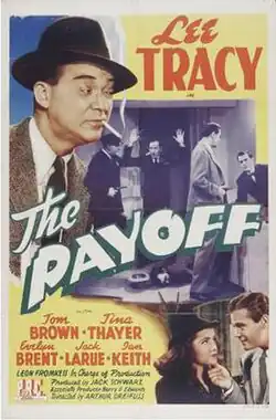 The Payoff is a 1942 American film directed by Arthur Dreifuss and co-produced by actor Lee Tracy and independent producer Jack Schwarz. It was released by Producers Releasing Corporation (PRC), a low-budget film studio.