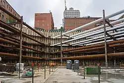Temporary bracing during the construction of the underground train box at the Transbay Transit Center (2013)