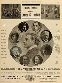 In 1913, Adolph Zukor lured Hackett from the stage to star in a role which Hackett had played in the theater numerous times. Since feature films were in their infancy, Hackett was at first reluctant to take the part, so Zukor tried to convince Hackett in person; as Neal Gabler writes, "When Hackett came to visit Zukor, he was the very picture of the faded matinee idol. He wore a fur-collared coat with frayed sleeves and carried a gold-headed cane".[2]