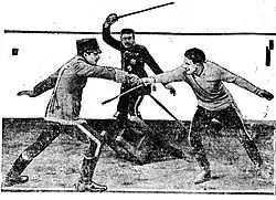 A scene from the film, as depicted in a contemporaneous newspaper.