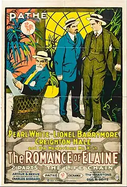 The Romance of Elaine is a 1915 American silent adventure film serial directed by George B. Seitz, Leopold Wharton and Theodore Wharton, based on the novel by Arthur B. Reeve. The film is considered to be lost.[1]