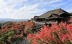 The Kiyomizu-dera in autumn, which serves as the background of this story