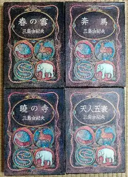 The Sea of Fertility (豊饒の海, Hōjō no Umi) is a tetralogy of novels written by the Japanese author Yukio Mishima. The four novels are Spring Snow (1969),[1] Runaway Horses (1969), The Temple of Dawn (1970), and The Decay of the Angel (1971).[2] The series, which Mishima began writing in 1964 and which was his final work, is usually thought of as his masterpiece. Its title refers to the Mare Fecunditatis, a lunar mare. The first English translated editions by Alfred A. Knopf and the Charles E. Tuttle Company featured cover designs by the graphic artist Joseph del Gaudio.