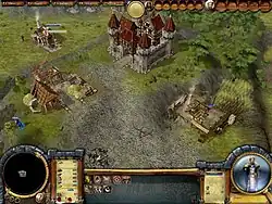 In the first five games, the primary goal on each map, broadly speaking, is to build a settlement with a functioning economy, producing sufficient military units so as to conquer rival territories.[20][21][22][23][24] To achieve this end, the player must, to one degree or another, engage in economic micromanagement, construct buildings, and generate resources.[24][25][26][27][28] In Rise of an Empire and Paths to a Kingdom, the importance of military conquest is scaled back, with many maps requiring players to accomplish certain predetermined tasks tied to the economic strength of their city.[29][30] Whilst the first four games feature broadly similar supply and demand-based gameplay, starting with Heritage of Kings, Blue Byte began to alter the game mechanics from title to title. So, with Heritage of Kings, there is little focus on micromanagement, daisy-chain economic processes, or construction, and more on technology trees, combat, taxation, and workers' motivation.[19] Rise of an Empire features a significantly simpler economic model than any previous title in the series, with the complexity of the various supply chains significantly streamlined.[31] Paths to a Kingdom features a more robust economy and focuses on micromanagement, daisy-chain economic processes, city organisation, upgrading buildings, technology trees, and trade requirements.[32] Additionally, for the first time in the series, the gameplay in Paths to a Kingdom is flexible enough to allow players to develop their settlement based upon one (or more) of three basic options - military, technology or trade.[30]