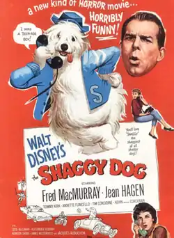 The Shaggy Dog is a 1959 American fantasy comedy film produced by Walt Disney Productions and loosely based on the 1923 novel The Hound of Florence by Felix Salten. Directed by Charles Barton from a screenplay by Lillie Hayward and Bill Walsh, the film stars Fred MacMurray, Tommy Kirk, Jean Hagen, Kevin Corcoran, Tim Considine, Roberta Shore, and Annette Funicello. The film follows a teenage boy named Wilby Daniels who, by the power of an enchanted ring of the Borgias, is transformed into a shaggy Old English Sheepdog.