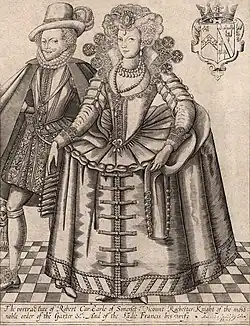 The Somerset Masque, sometimes known as The Squire's Masque,[2] was written by Thomas Campion and performed on 26 December 1613 at the old Banqueting House at Whitehall Palace, to celebrate the wedding of Robert Carr, 1st Earl of Somerset and Frances Howard. Anne of Denmark, queen consort of James VI and I, took part in the performance by offering a branch from a magic golden tree.[3]