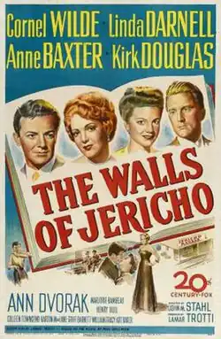The Walls of Jericho is a 1948 American drama film directed by John M. Stahl, written by Lamar Trotti after the novel by Paul I. Wellman published in 1947. It stars Cornel Wilde, Linda Darnell, Anne Baxter, Kirk Douglas, Ann Dvorak, Colleen Townsend and Marjorie Rambeau. The picture was released by 20th Century Fox on August 4, 1948.[2][3]