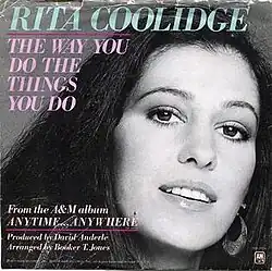 Rita Coolidge covered "The Way You Do the Things You Do," and it was released in 1978 as the third single from her most successful album, Anytime...Anywhere. In the U.S., the single reached number 20 on the Billboard Hot 100, number 20 on the Record World Singles Chart and number 18 on the Cash Box Top 100. It also reached number 16 in Canada. It is ranked as the 151st biggest Canadian hit of 1978.[7]