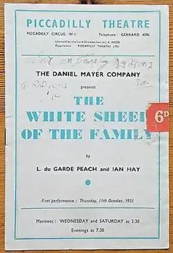The White Sheep of the Family is a 1951 British comedy play by Lawrence du Garde Peach and Ian Hay. A criminal family are distressed when their son wants to go straight.