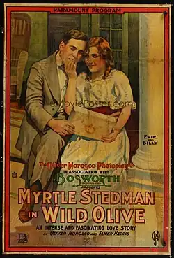 The Wild Olive is a lost[2] 1915 American drama silent film directed by Oscar Apfel and written by Elmer Blaney Harris, Basil King and Oliver Morosco. The film stars Myrtle Stedman, Forrest Stanley, Mary Ruby, Charles Marriott, Edmund Lowe and Herbert Standing. The film was released on June 24, 1915, by Paramount Pictures.[3][4]