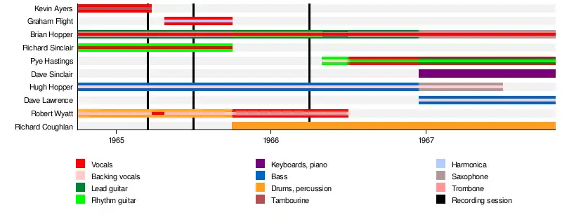 • Hugh Hopper – bass (1964–1966); saxophone (1966–1967), backing vocals (1964–1967; died 2009)