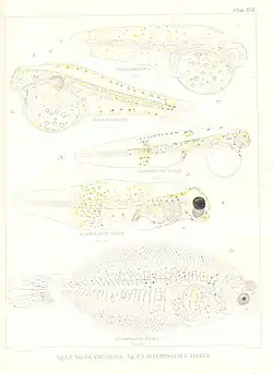 - ^ Rachid Amara; Jean-Charles Poulard; Françoise Lagardère & Yves Désaunay (1998). "Comparison between the life cycles of two Soleidae, the common sole, Solea solea, and the thickback sole, Microchirus variegatus, in the Bay of Biscay (France)". Environmental Biology of Fishes. 53 (2): 193–209. doi:10.1023/A:1007476204955.
