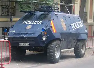 Police - The vehicle can be equipped as a police vehicle with (e.g. Mine-sweeping shield, search headlight) or more militarily (e.g. Tire pressure adjustment system, NBC protection facility, night-vision devices) additional devices to be modular equipped, and turrets with machine guns or a 20mm-cannon can be used.[2]