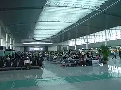 At present, Tianjin Railway Station includes the Beijing–Tianjin intercity railway and the north station railway. The elevated waiting room, underground pit room, high platform canopy, passenger tunnel, and line package channels have a total construction area of 185,000 square meters (1,991,323 sq ft), of which the newly built North station house comprises 71,000 square meters (764,238 sq ft), the South Station house has 33,000 square meters (355,209 sq ft) and the canopy has 81,000 square meters (871,877 sq ft). The elevated waiting room is 22,000 square meters (236,806 sq ft) and can accommodate 6,000 passengers.[10] The office is located in the basement of the underground pit and has a construction area of 12,400 square meters (133,472 sq ft).