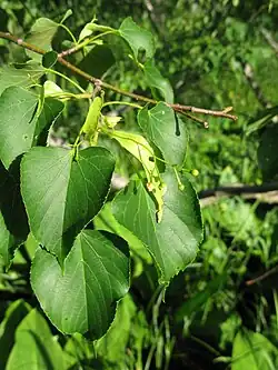Tilia japonica, the Japanese lime or Japanese linden, is a species of Tilia native to eastern China and Japan, preferring to grow in mountains up to 2000 m. It superficially resembles the better-known Tilia cordata, the small-leaved lime, and was originally described as Tilia cordata var. japonica. It differs from T. cordata in having 164 chromosomes instead of 82, and by some subtle differences in leaf and flower morphology. T. japonica inflorescences consistently have 5 staminodes, which is a reliable trait distinguishing it from T. cordata and T. amurensis.[3] Recent studies indicate T.japonica to play an important role in maintaining the ectomycorrhizal networks in local forests it grows in Japan.[4]