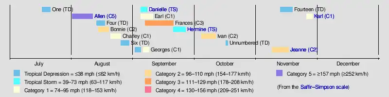 Hurricane Karl (1980)Hurricane Jeanne (1980)Tropical Storm Hermine (1980)Tropical Storm Danielle (1980)Hurricane AllenSaffir–Simpson scale