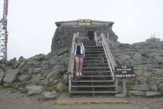 The Tip-Top House is a historic former hotel in Mount Washington State Park in Sargent's Purchase, New Hampshire, United States. Built in 1853, it is the oldest surviving building in the summit area of Mount Washington, and is believed by the state to be the oldest extant mountain-top hostelry in the world. It features exhibits concerning the mountain's history. Located near the modern summit building and other visitor facilities, it is open for a fee to visitors from early May to early October.[2] It was added to the National Register of Historic Places in 1982.[1]