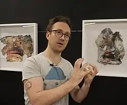 Previous publications include various collaborative books. Orpheus and Eurydice, a graphic poetic novel in collaboration with his wife, Kiran Millwood Hargrave (Bloomsbury Academic).[10] Poor Tom, a collaboration with the academic and writer Professor Simon Palfrey in conjunction with the exhibition Shakespeare’s Dead at the Bodleian Library, Oxford University.[11][12] Charnel House, a poetic graphic novel in collaboration with 37 contemporary poets and writers (Bridgedoor Press), which won best anthology at the Saboteur Awards.[13][14][15] House of the Deaf Man, a collaboration with the poet Andrea Porter (Gatehouse Press).[16] A Fools World, a poetic visual pack of Tarot Cards with poet Helen Ivory (Gatehouse Press) which won best collaboration at the Saboteur Awards. Scavengers, poems and paintings in response to the plays of Shakespeare in collaboration with Kiran Millwood Hargrave (Cambridge University).[17] Ekphrasis, poems in response to de Freston’s painting. Exhibition catalogues include, From Darkness (No 20 Arts), Demons Land (National Trust), On Falling (Breese Little), Reflections (Christ’s College, Cambridge), Deposition (Green Pebble).