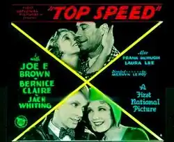 Top Speed is a 1930 American Pre-Code musical comedy film released by First National Pictures, a subsidiary of Warner Brothers. It was based on a 1929 stage musical of the same name by Harry Ruby, Guy Bolton and Bert Kalmar. The film stars Joe E. Brown, Bernice Claire, Jack Whiting, Laura Lee, and Frank McHugh.[1]