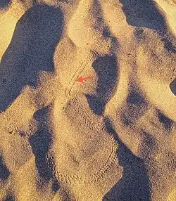 As the trackers get closer to the animal, they must make sure that they see it before it sees them. Some trackers maintain that an animal keeps looking back down its own trail, always on the alert for danger coming from behind. When the spoor is very fresh, trackers may have to leave the spoor so that the animal does not see them first. Animals usually rest facing downwind, so that they can see danger approaching from the downwind side, while they can smell danger coming from behind them. An animal may also double back on its spoor and circle downwind before settling down to rest.[2] A predator following its trail will move past the resting animal on the upwind side before realizing that the animal had doubled back, and the resting animal will smell the predator in time to make its escape.