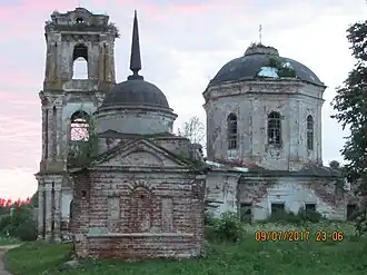 Trinity Church (Russian: Церковь Троицы Живоначальной), founded by Alexander Shishkov in 1785 and consecrated in 1794, is the oldest surviving building of Pervitino estate, located in the central part of the Pervitino village in 15 kilometres from Likhoslavl, Tver Oblast, Russia, on the left bank of the Kava river. Modern address: Tver region, Likhoslavl district, village Pervitino, st. Sevastyanova, 31.