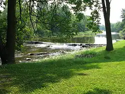 Trout River has two dams: the St-Onge Dam located in the hamlet of Trout River in Elgin near the Canada–US border. The other dam is the Hooker Dam, which is located between the hamlet of Kensington in Godmanchester and the path of the second concession to Elgin. The Trout River flows into the Châteauguay River just south of the town of Huntingdon. The municipality of Huntingdon set up a Route 138 rest stop at the confluence of the two rivers.