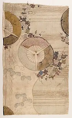 1. ^ "縞平絹地草花扇面雪輪雲模様辻が花 裂 | Tsujigahana Textile with Horizontal Stripes, Flowering Plants, Fans, Snowflakes, Clouds, and Bellflowers". The MET. Retrieved 1 April 2019.