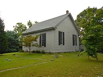 The Tuckerton Methodist Episcopal Church was originally established in 1797.[31] In 1868, the congregation broke ground on an elaborate Colonial-style church building featuring a slate-covered steeple, forged stained glass windows, a town clock, bell, and pipe organ. The building was constructed by shipwrights, as the boro was a bustling shipping and fishing village at the time.[32]