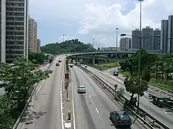 Tuen Mun Road (Chinese: 屯門公路) is a major expressway in Hong Kong which connects Tuen Mun with Tsuen Wan, within the New Territories. It is part of Hong Kong's Route 9, which circumnavigates the New Territories. Opened in 1978, it was once the major trunk route linking the northwest New Territories to urban Kowloon and is known for its frequent traffic jams and road accidents owing to its early design and heavy usage. As a result, speed limits have been enforced to 70–80 km/h (45–50 mph) due to geometric constraints.