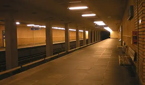 Tveita is a subway station on the Furuset Line of the Oslo Metro between Hellerud and Haugerud, located in the Alna borough of Oslo, Norway. The station is the first one on Furusetbanen that is not shared with another line. It was opened as part of the original line in 1970. Tveita is located underneath the shopping centre Tveita senter.